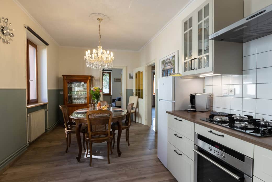 Appartement Denise – 90 m² au rez-de-chaussée d’une maison alsacienne typique rénovée à Thanvillé. Idéal pour 4/5 pers., il comprend 2 chambres confortables, salon convivial avec canapé convertible, cuisine équipée et salle de bains. Terrasse privative pour vos repas au soleil, jardin commun avec trampoline et parking gratuit. Entre Strasbourg et Colmar, proche du Haut-Koenigsbourg et de la Route des Vins. Calme et authenticité au rendez-vous !